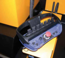 The remote control enables the operator to control both the hammering process and the transport of the machine remotely. This is made possible by the use of Danfoss electro-proportional distributors that allow for the control of the tracks to move the unit alone or to operate the pile driver to pound in posts.